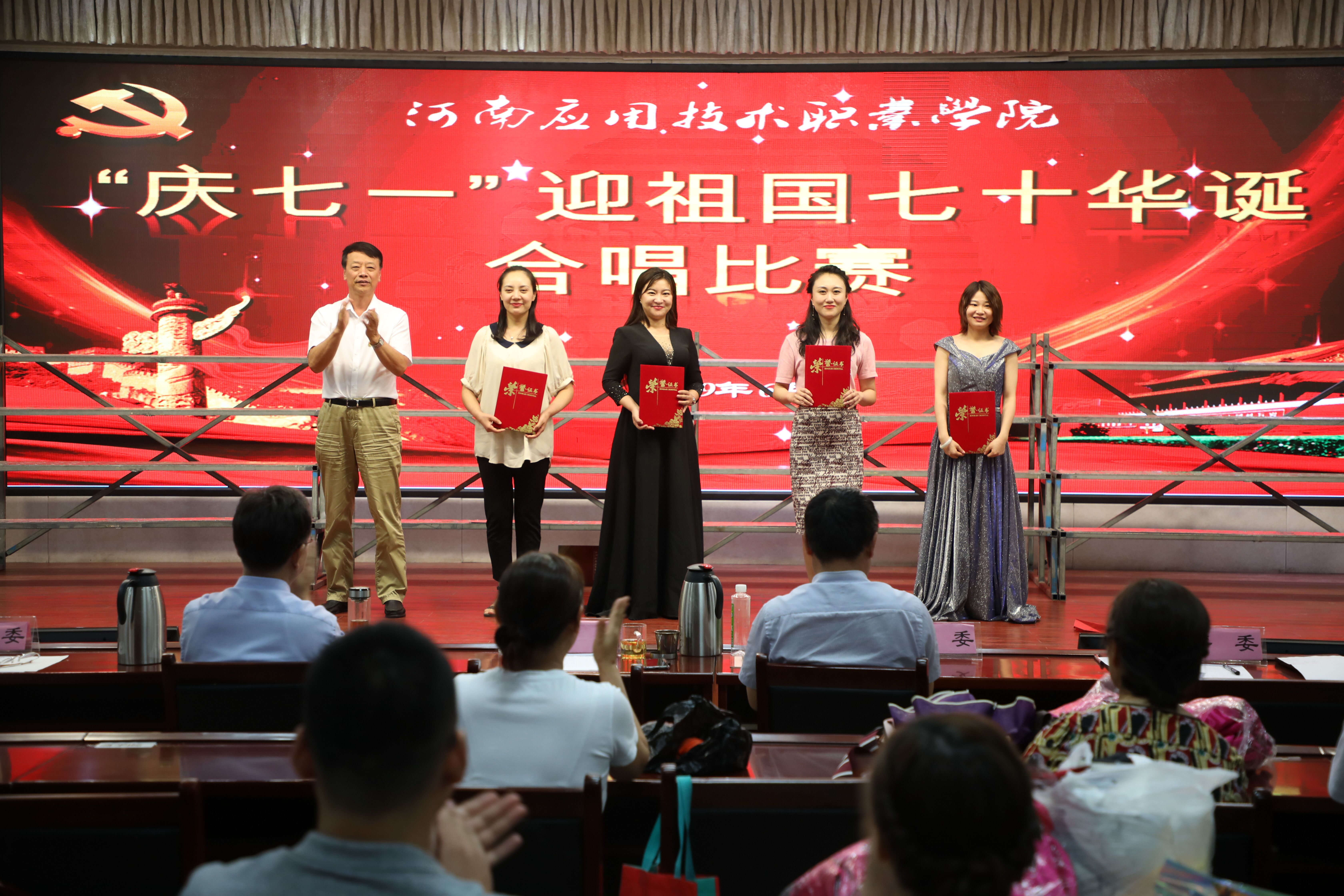 本次合唱比赛以“爱我中华 唱我应院”为主题。基础教学部党总支全体教师不畏酷暑、克服困难、按时参加排练,以《团结就是力量》、《我和我的祖国》两首参赛歌曲,唱出了对祖国大好河山的热爱,唱出了新时代高校教师的风采,唱出了应院人不忘初心、砥砺前行精神面貌,最终在15个党总支参赛队伍激烈角逐中,荣获三等奖佳绩。同时基础教学部党总支马丽老师获优秀指挥奖。