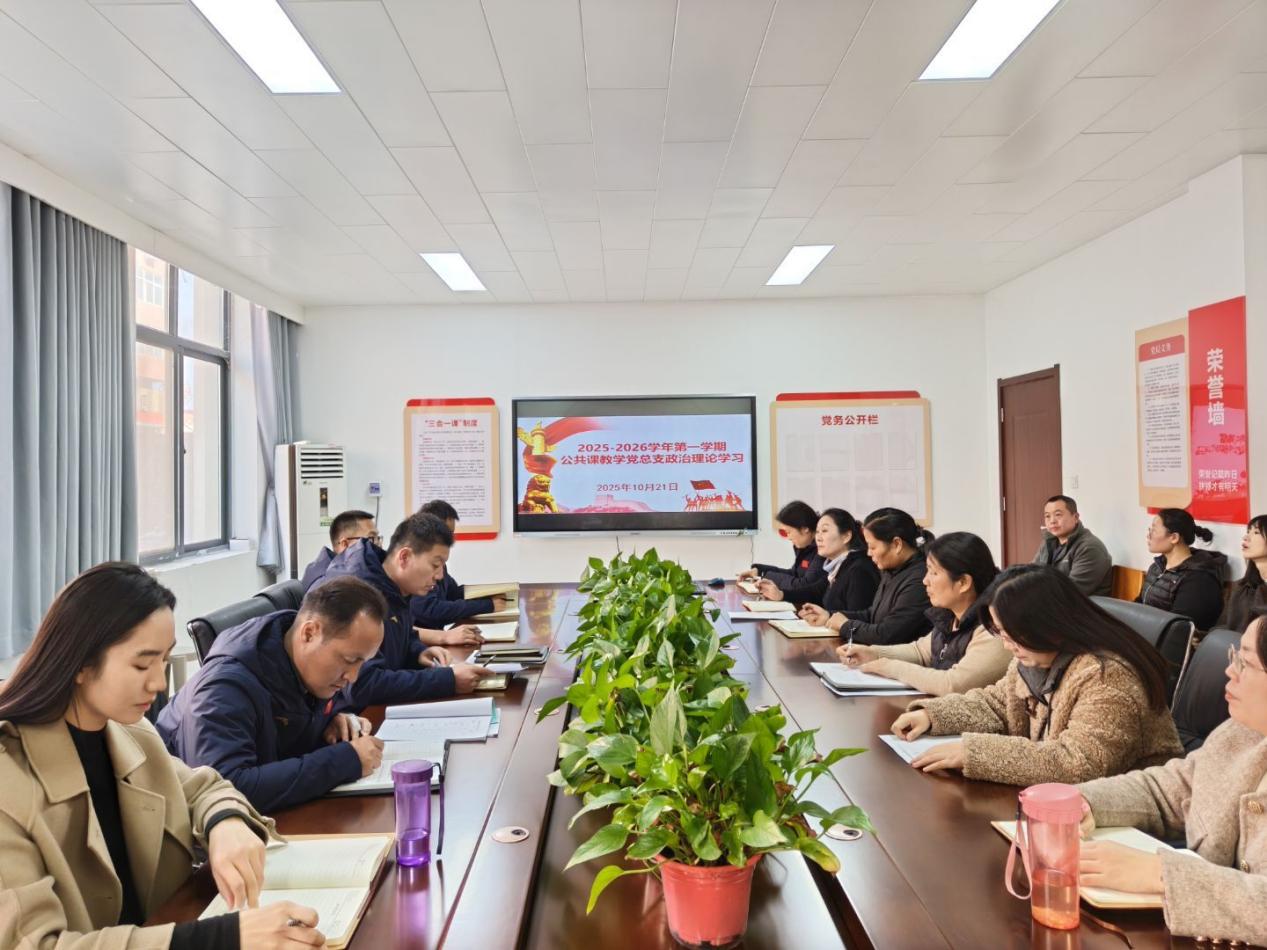 10月21日下午,公共课教学党总支分别在郑州校区112室、开封校区105室召开政治理论学习会议,会议由公共课教学党总支副书记徐涛主持,党总支全体教师参加本次学习。
