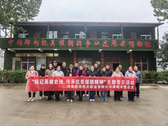 为纪念中国人民志愿军抗美援朝出国作战75周年,传承和弘扬伟大的抗美援朝精神,10月25日上午,河南应用技术职业学院公共课教学党总支组织全体党员前往郑州抗美援朝战争口述历史博物馆开展主题党日活动,并参加博物馆举办的相关活动。