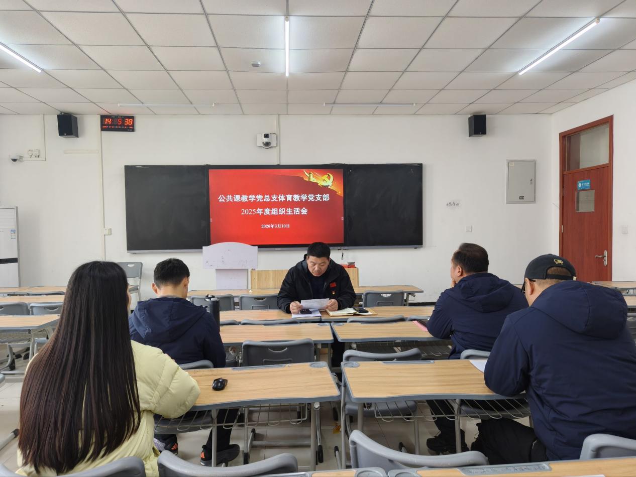 为深入学习贯彻习近平新时代中国特色社会主义思想和党的二十届四中全会精神,锲而不舍落实中央八项规定精神,扎实推进作风建设常态化长效化,根据学校党委关于召开 2025 年度基层党组织组织生活会和开展民主评议党员的统一部署,3 月 10 日下午, 公共课教学党总支体育教学党支部采用“主会场 + 线上连线” 形式,在教学楼 A302 主会场、南院办公楼 105 分会场同步召开 2025 年度组织生活会。会议由支部书记徐涛主持,支部全体党员全员参会、全程参与。