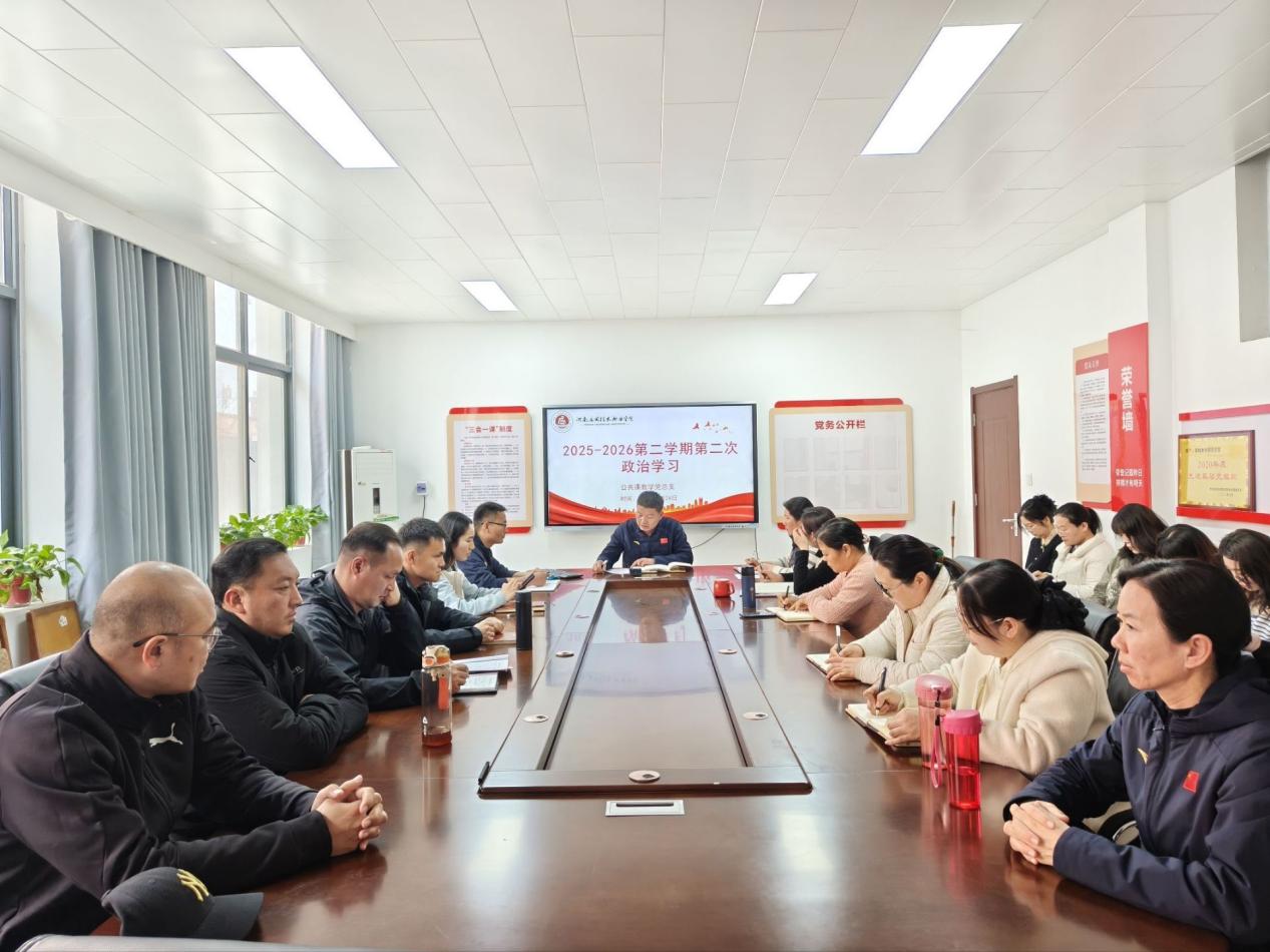 3月24日下午,公共课教学党总支分别在郑州校区112室、开封校区105室召开政治理论学习会议,会议由党总支副书记徐涛主持,全体专兼职教师参加本次学习。
